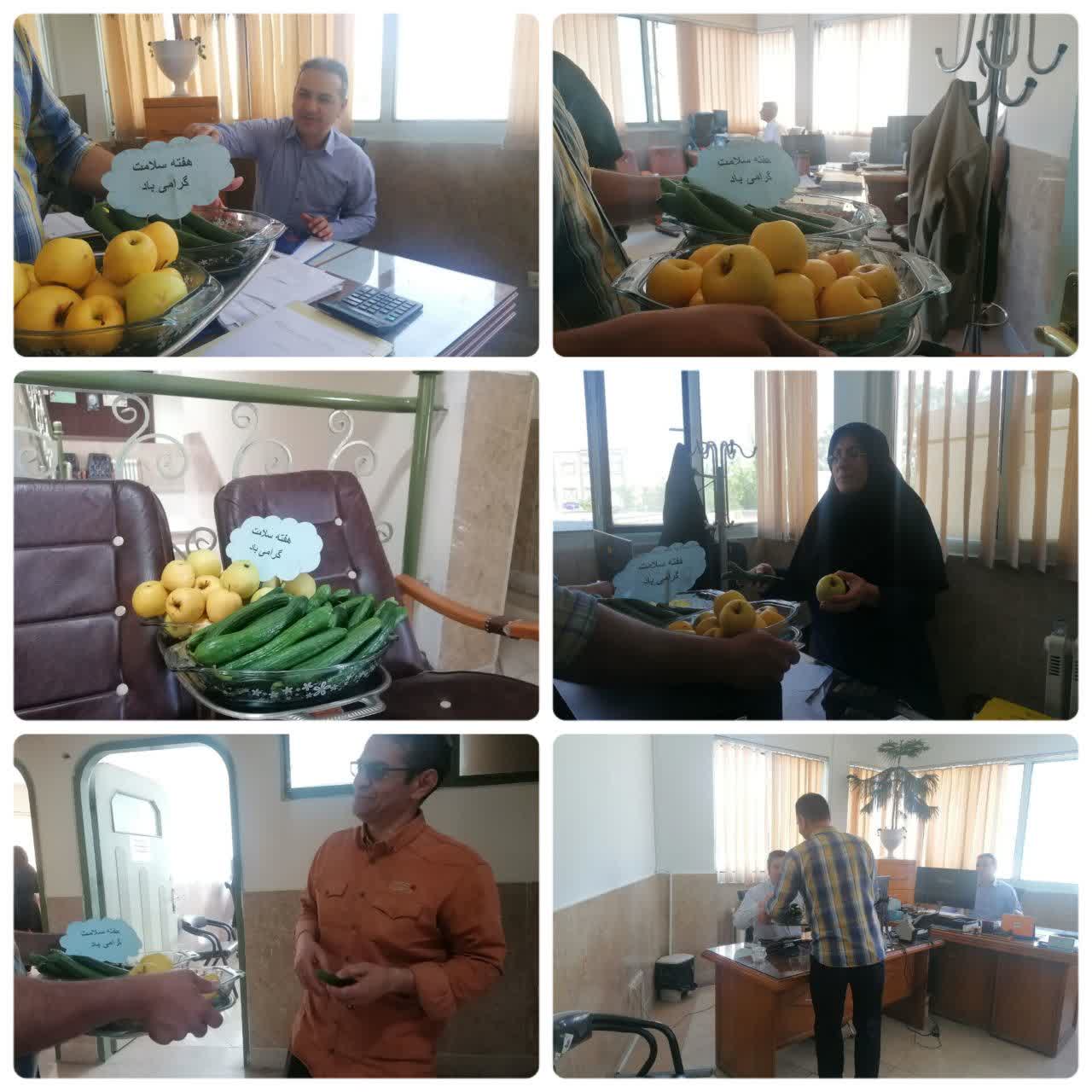 با توجه به روزشمار هفته سلامت، برنامه امروز همراستا با روز سهشنبه، ۲/۲ تحت عنوان «محیط سالم، جامعه سالم با مشارکت مردم» اجرا شد. ایجاد محیط کاری سالم از طریق ترویج سبک زندگی درست، نقش بسزایی در ارتقای سلامت عمومی دارد. توزیع میوه میان همکاران نیز، گامی در جهت ترویج تغذیه سالم و افزایش سطح آگاهی نسبت به اهمیت مصرف مواد غذایی مفید بود.