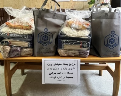 توزیع بسته معیشتی ویژه مادران باردار و مادران شیرده با همکاری واحد جوانی جمعیت و اداره اوقاف و امور خیریه
