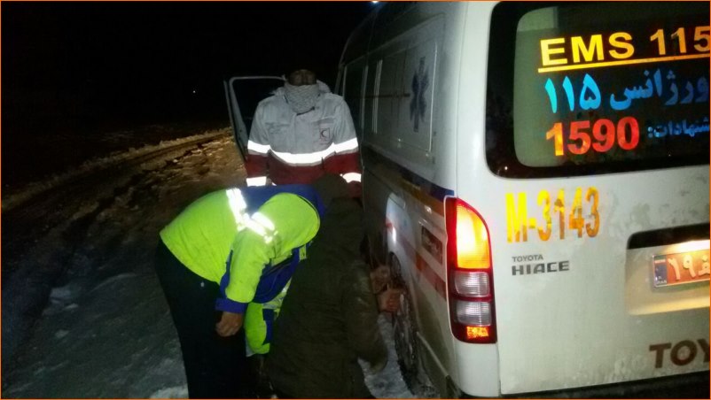 با تلاش مشترک تيم اورژانس 115 شهرستان چناران و هلال احمر يک مادر باردار در شرايطي که برف سنگين باعث انسداد جاده هاي روستايي و شهري شده بود و شرايط بد جوي نيز با وجود استفاده از تجهيزات کامل و زنجير چرخ در خودرو های کمک دار دسترسي را چندين بار دچار مشکل کرد بطوريکه از تجهيزات يدک کش جهت نجات آمبولانس ها با هماهنگي ستاد بحران شهرستان استفاده گرديد ،پرسنل زحمت کش 115 و هلال احمر توانستند در ساعت 8 شب و در سرماي 12 درجه سانتي گراد زير صفر مادر را از يک گاوداري در بالاتر از روستاي سرآسياب و با وجود پياده روي در برف به آمبولانس منتقل و به بيمارستان اعزام کنند تا با زايمان اين مادر در ساعت 30/7 صبح موجب خوشحالي خانواده نگران آن فراهم گردد.
