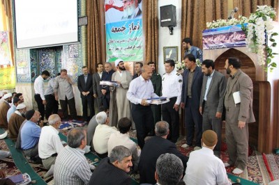 مسئولین وکارکنان شبکه بهداشت ودرمان ضمن شرکت در مراسم عبادی نماز جمعه شهرستان ، اقدام به بر پایی چادر سلامت در قسمت آقایان وخانمها برای نماز گزاران در محل مصلی نماز جمعه نمود .