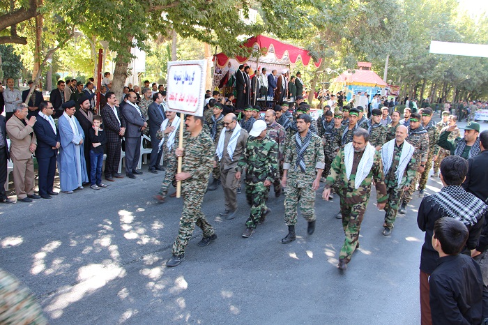 بمناسبت گرامیداشت هفته دفاع مقدس ، کارکنان ومسئولین شبکه بهداشت ودرمان چناران همراه با مردم غیور وانقلابی شهر چناران و گلبهار در رژه حماسی نیروهای نظامی وانتظامی و بسیج که در تاریخ 31/6/96 بر گزار گردید ، شرکت نمودند.