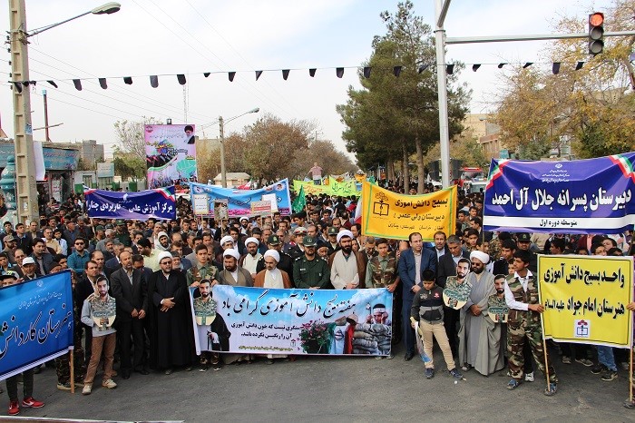 16 آبان 1396 بازدید: 473 امتیاز: ( 0 Rating ) شرکت کارکنان چناران در راهپیمایی 13 آبان امتیاز کاربران لطفا رای دهید رای 1 رای 2 رای 3 رای 4 رای 5 بمناسبت گرامیداشت سیزده آبان روز دانش آموز وتسخیر لانه جاسوسی جمعی از بسیجیان ومسئولین شبکه بهداشت ودرمان چناران دوشادوش مردم حزب ا...شهرستان حضور فعال داشتند. قبلی بعدی
