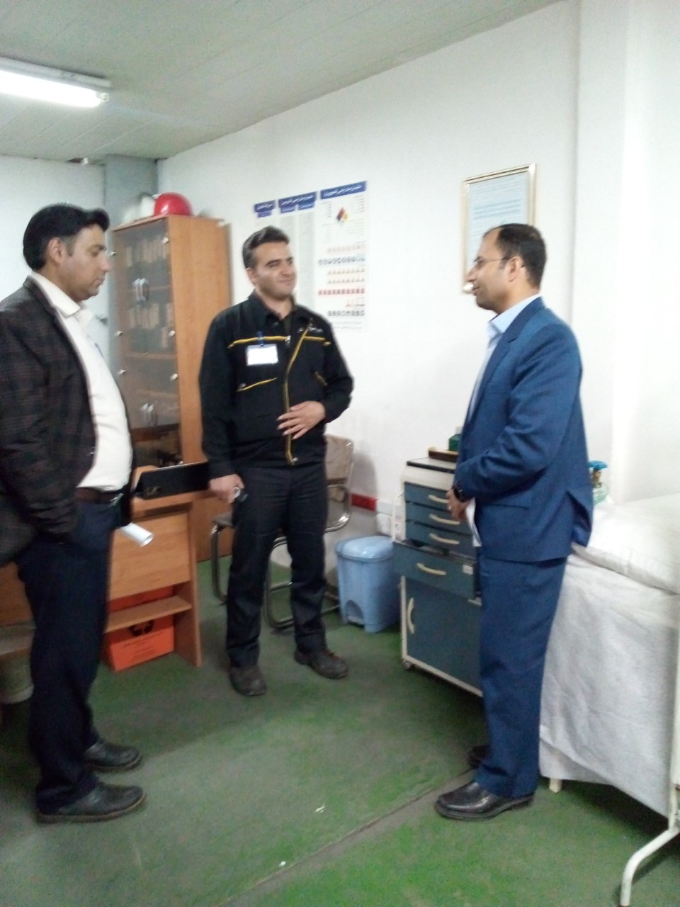 دکتر رجب پورمدیر شبکه بهداشت ودرمان شهرستان به اتفاق کارشناسان بهداشت محیط وحرفه ای مرکز بهداشت ،کارخانه پارت