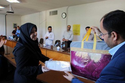 در پایان از خدمات خوب وارزنده چندین ساله سرکار خانم منزوی از طرف شبکه وبیمارستان وهمکاران با لوح سپاس وتقدیم هدایا تقدیر بعمل آمد.