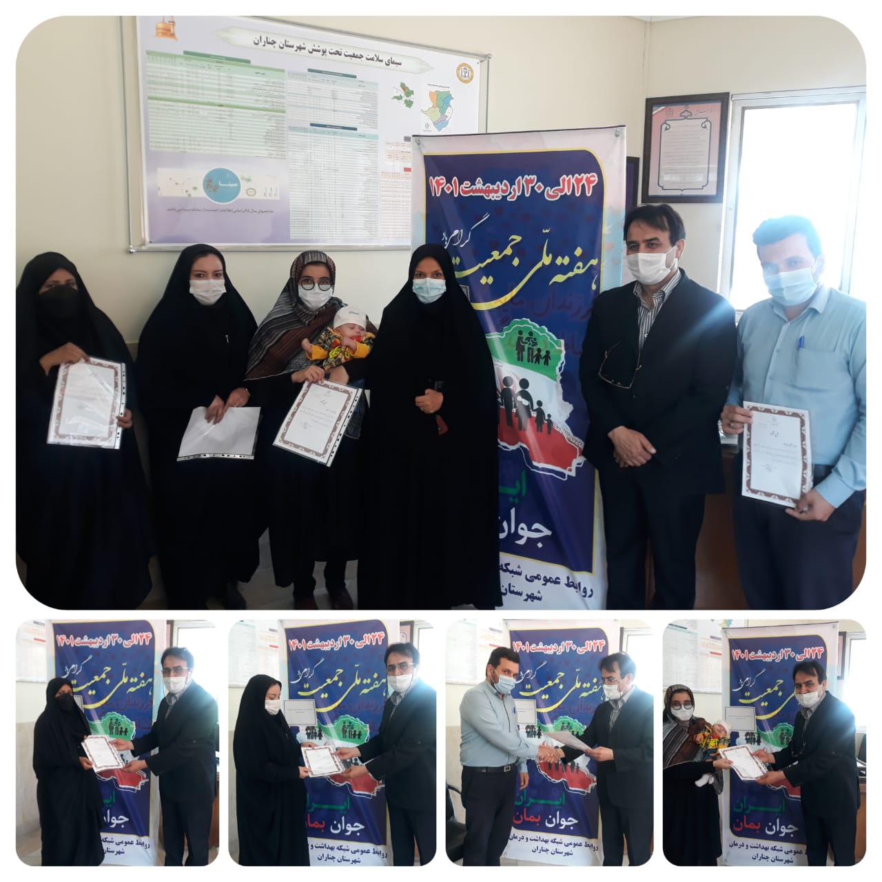 🔶️ معاونت بهداشت شهرستان چناران دکتر سید جواد موسوی نژاد از کارمندان این شبکه که در سال ۱۴۰۰ لغایت ۱۴۰۱ ازدواج کرده یا صاحب فرزند شده بودند ضمن تبریک با دادن لوح ازاین عزیزان تقدیر کرد