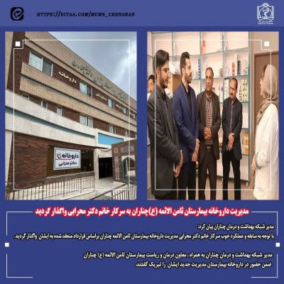 مدیریت داروخانه بیمارستان ثامن الائمه (ع)چناران به سرکار خانم دکتر محرابی واگذار گردید.
